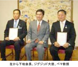 下地会長は10年前にモンゴルのエンフバヤル前大使館と知り合い、モンゴル経済団体の日本企業観察への協力、モンゴル留学生への奨学金援助等、民間レベルでの両国の友好に貢献して参りました。